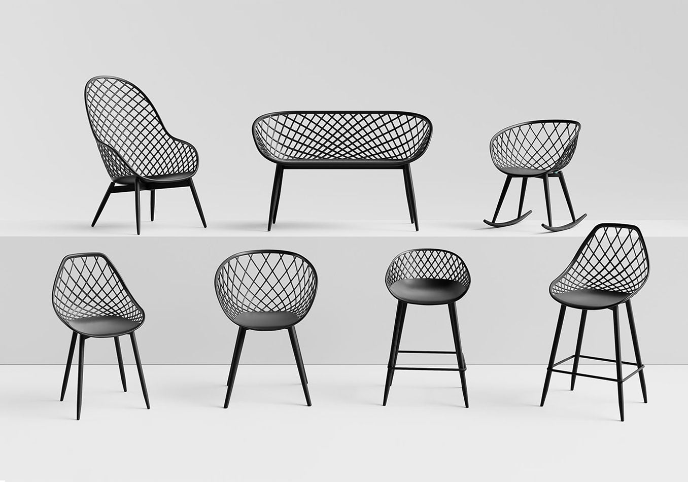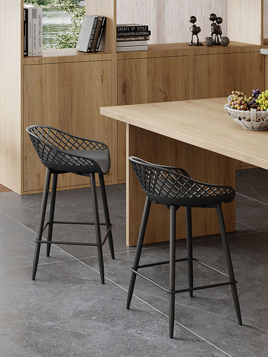 Kurv® Counter Stool - Black, Indoor/Outdoor - Set of 2