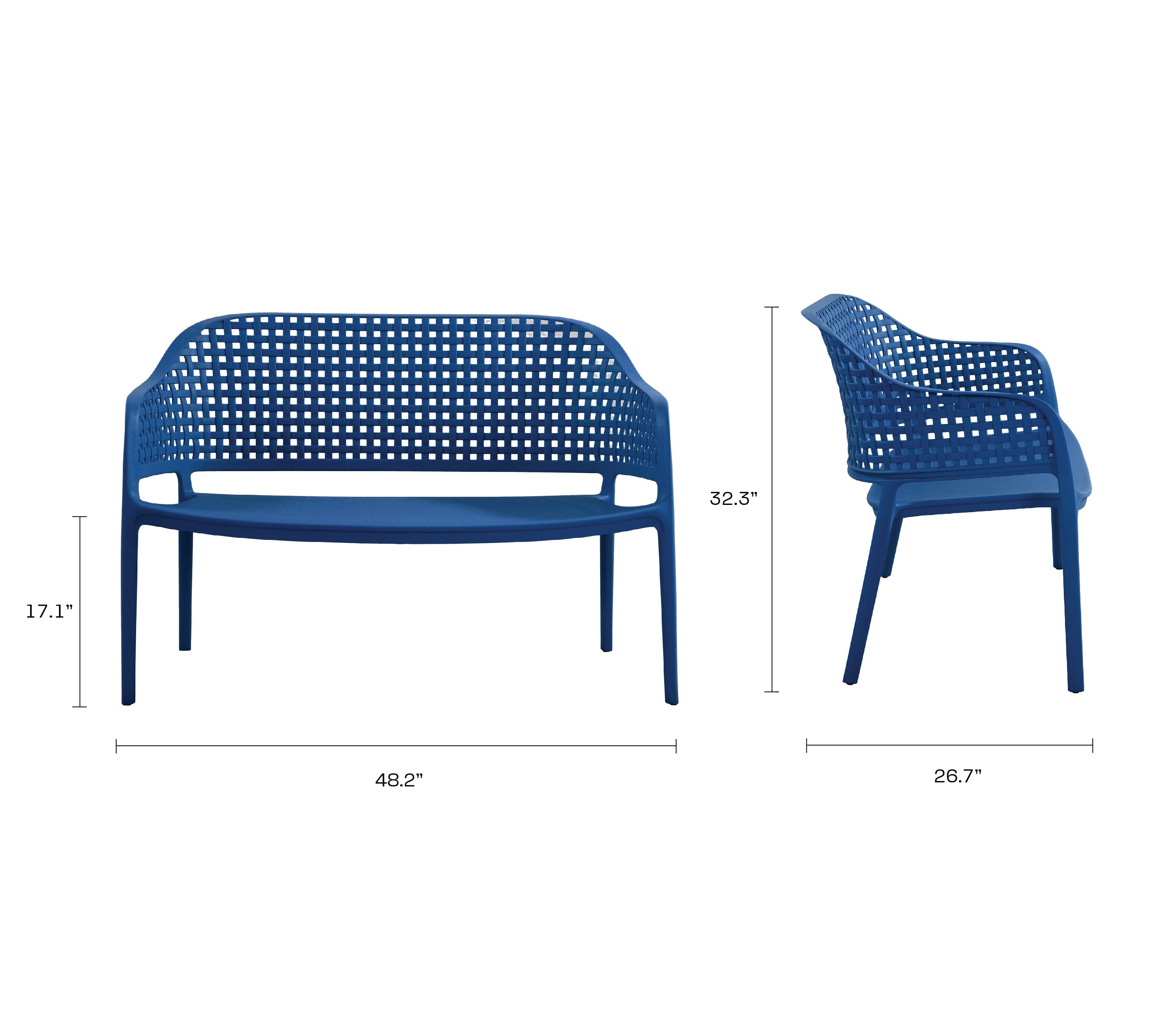 The Belize Bench is a versatile and stylish seating option designed to enhance any outdoor or indoor space. Showcasing a signature woven texture and gently curved backrest, it offers both comfort and a contemporary look. Made from durable, weather-resistant polypropylene, the bench is easy to maintain and built for long-lasting use.