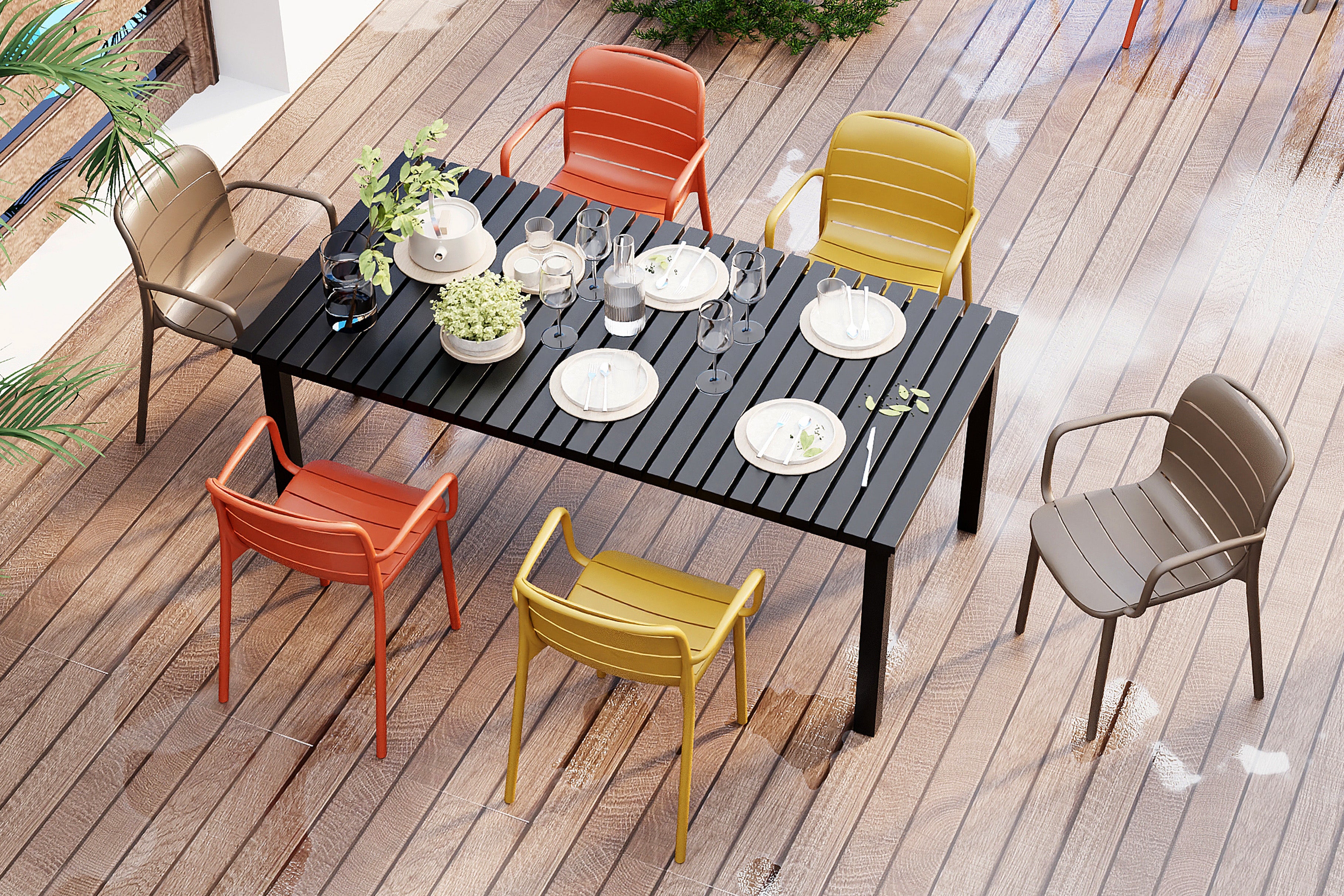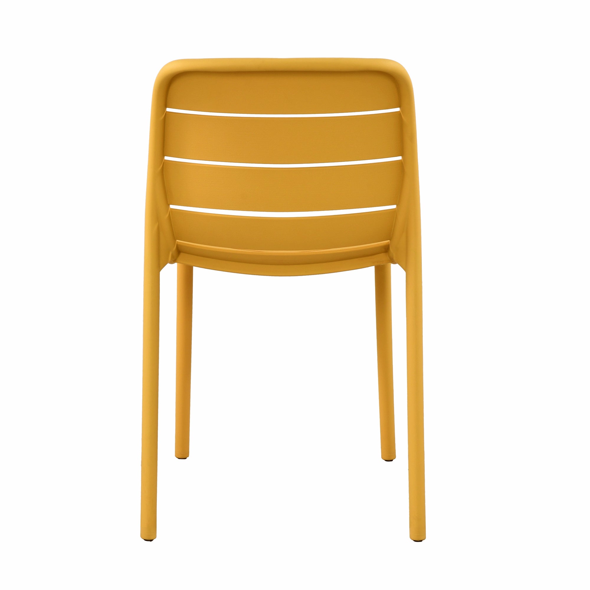 It features a sleek, modern design with a stackable structure, offering convenience and space-saving storage when not in use. Delivered fully assembled, the Emily Arm Chair and Emily Side Chair are ready to use straight out of the box, making them a hassle-free choice for patios, dining areas, or events. Available in a range of vibrant colors, these chairs effortlessly combine practicality with a touch of contemporary elegance.