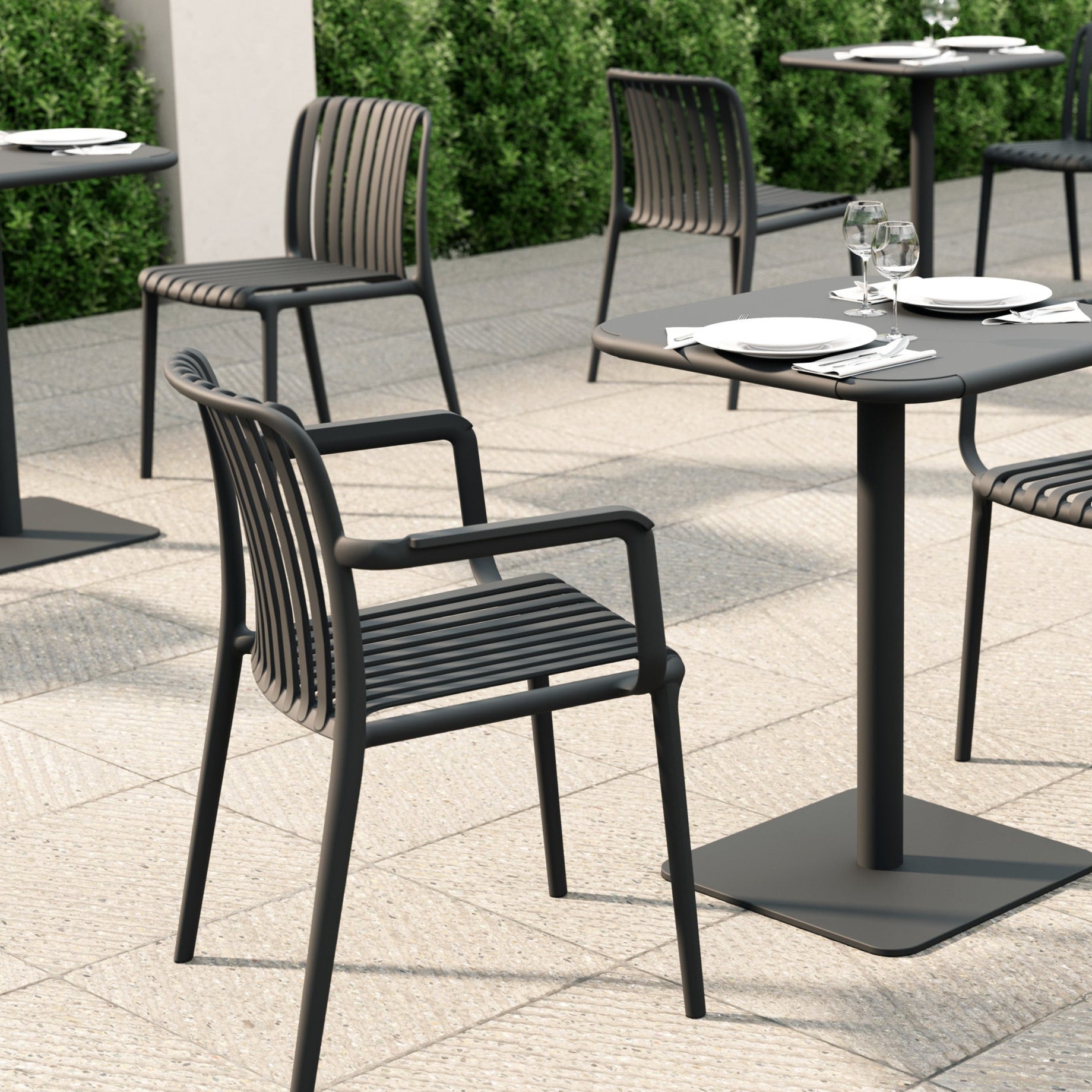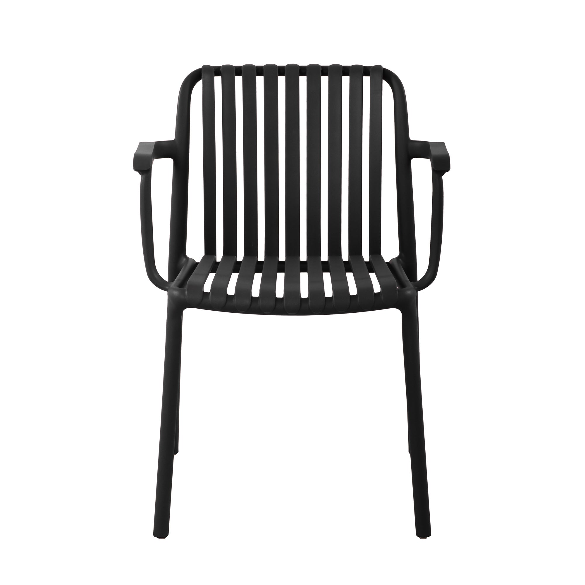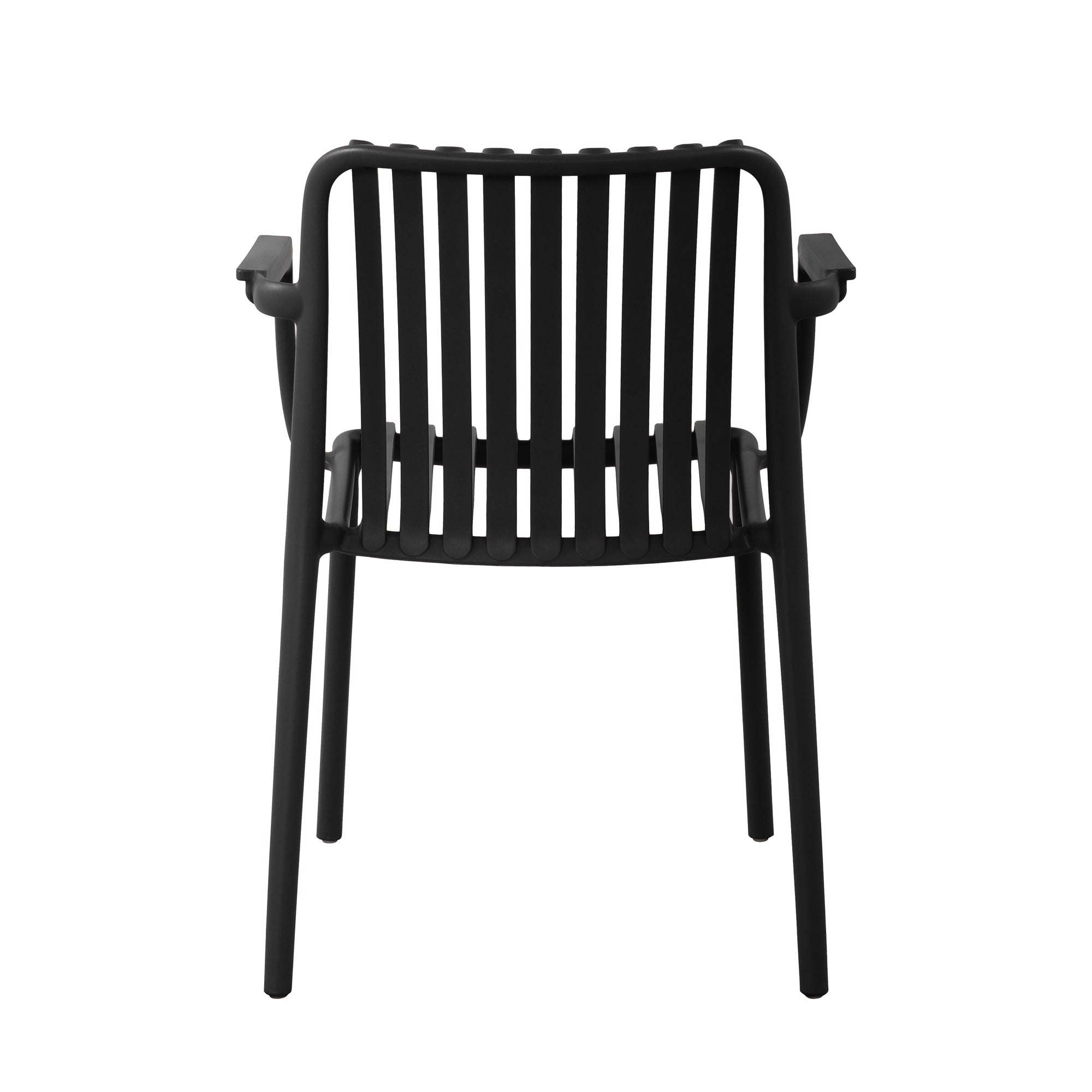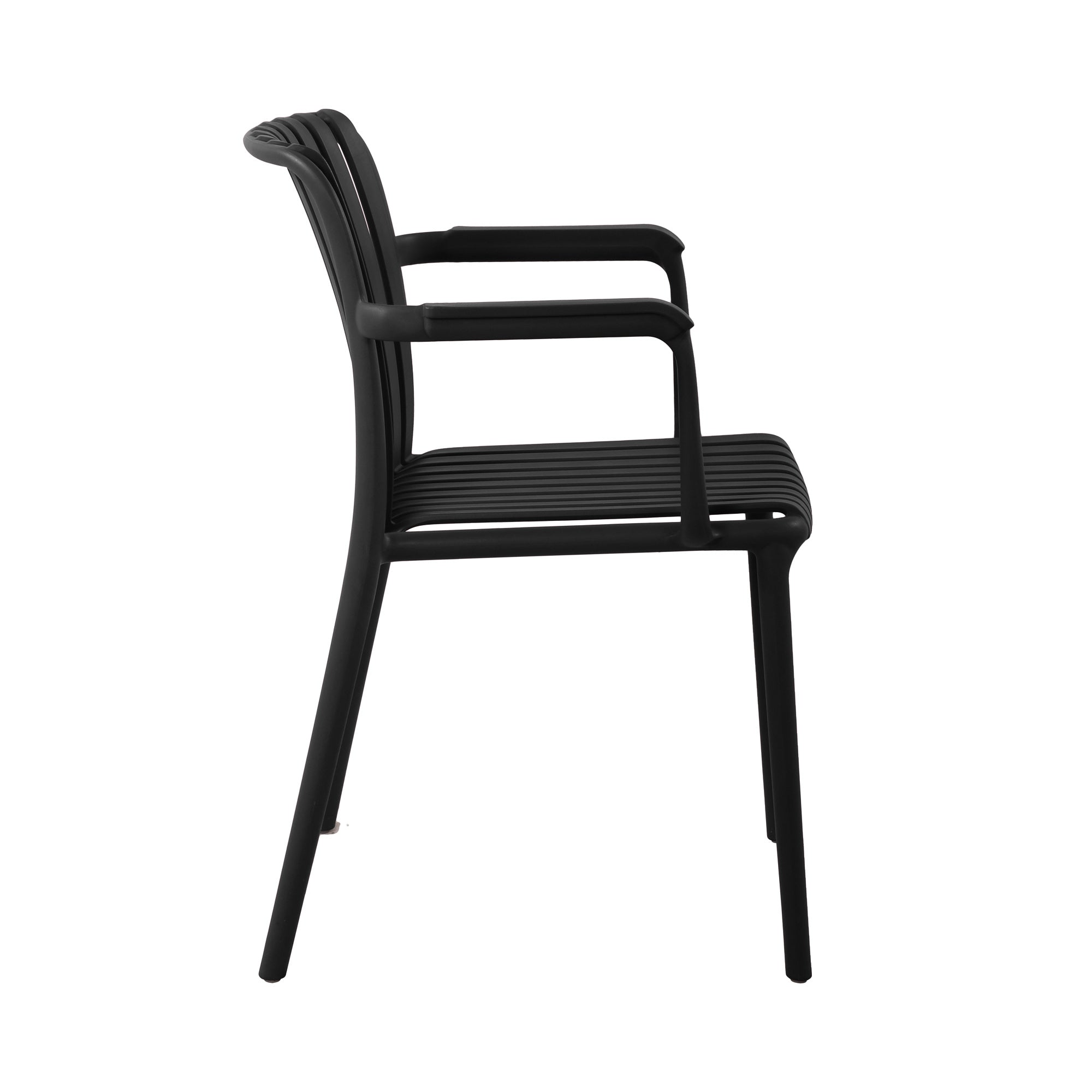 As part of the Fiji Collection, which includes a Side Chair, Lounge Chair, and Bar Chair, the Fiji Arm Chair allows for mix-and-match flexibility to suit various settings. With its stackable design for easy storage, this chair is perfect for dining areas, patios, and commercial spaces, offering both practicality and contemporary elegance.