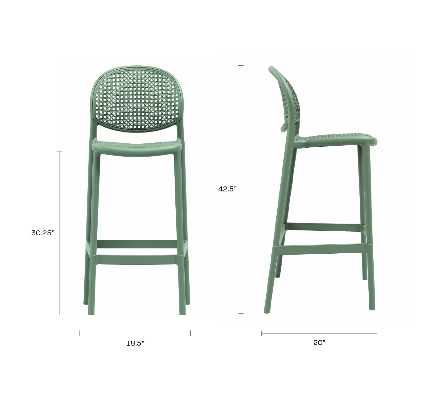 Joss Bar Stool - Aloe Green, Indoor/Outdoor - Set of 4