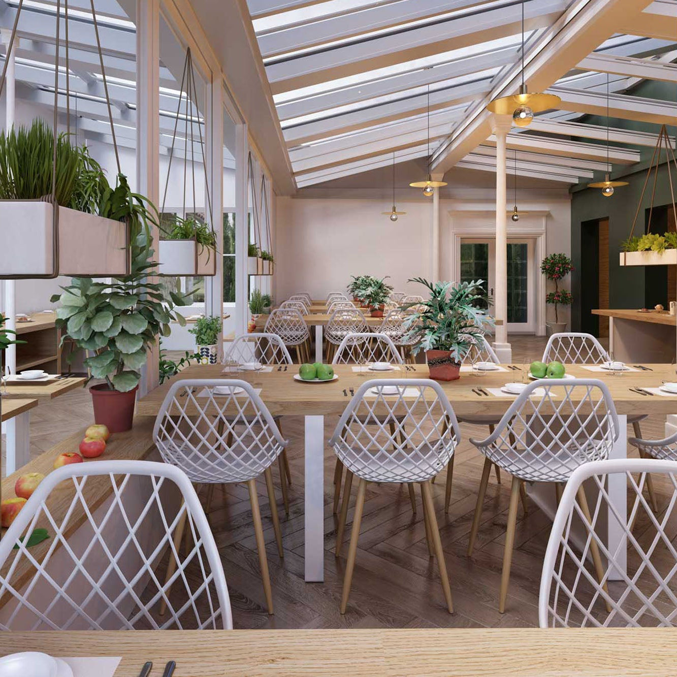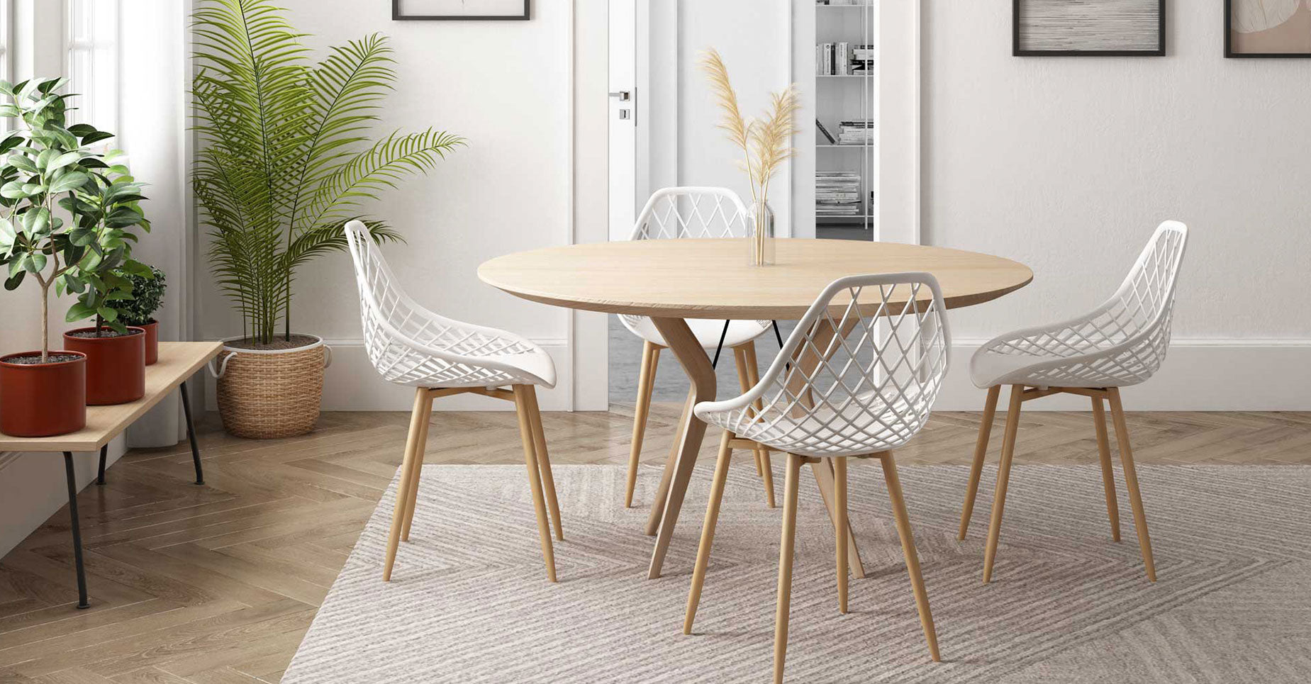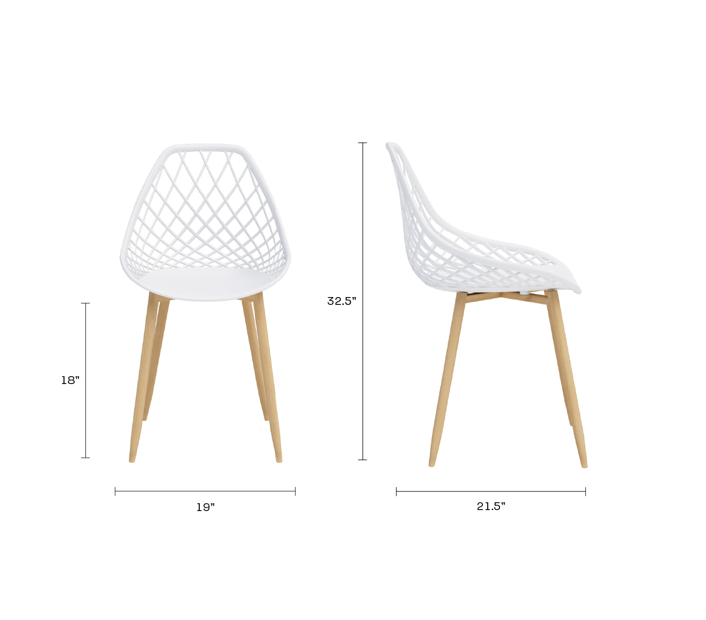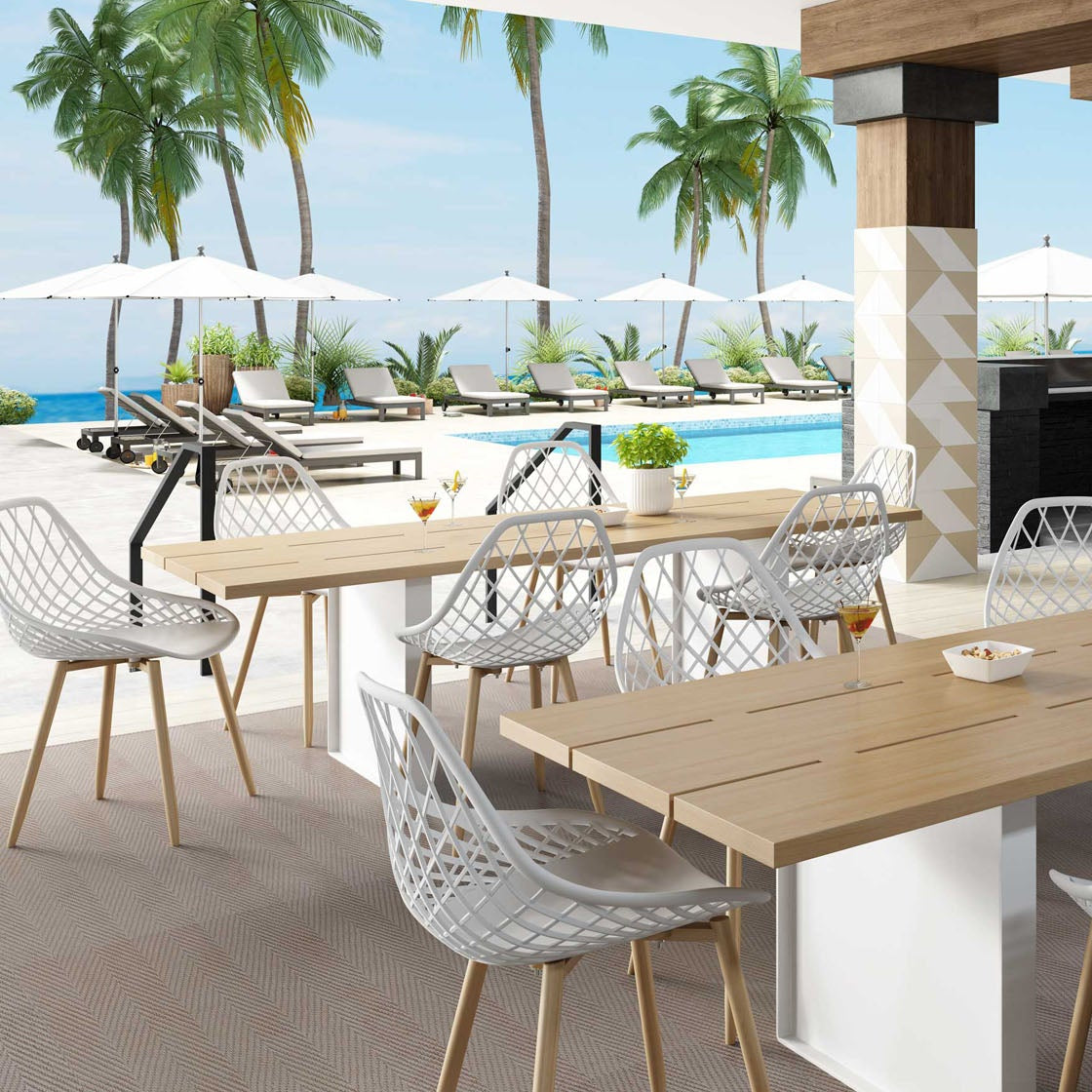 Kurv® Dining Chair - White with Natural Legs, Indoor/Outdoor - Set of 2