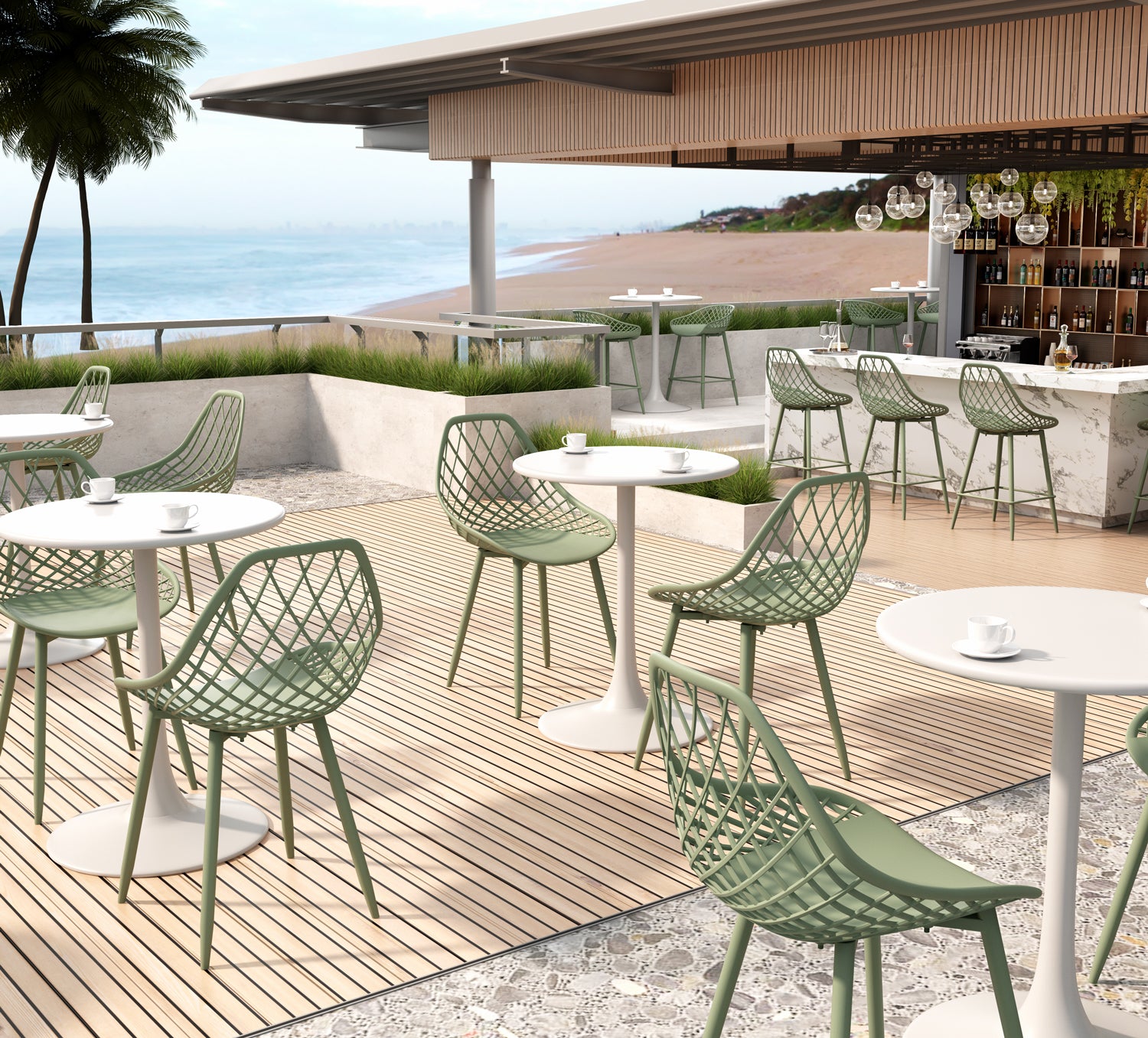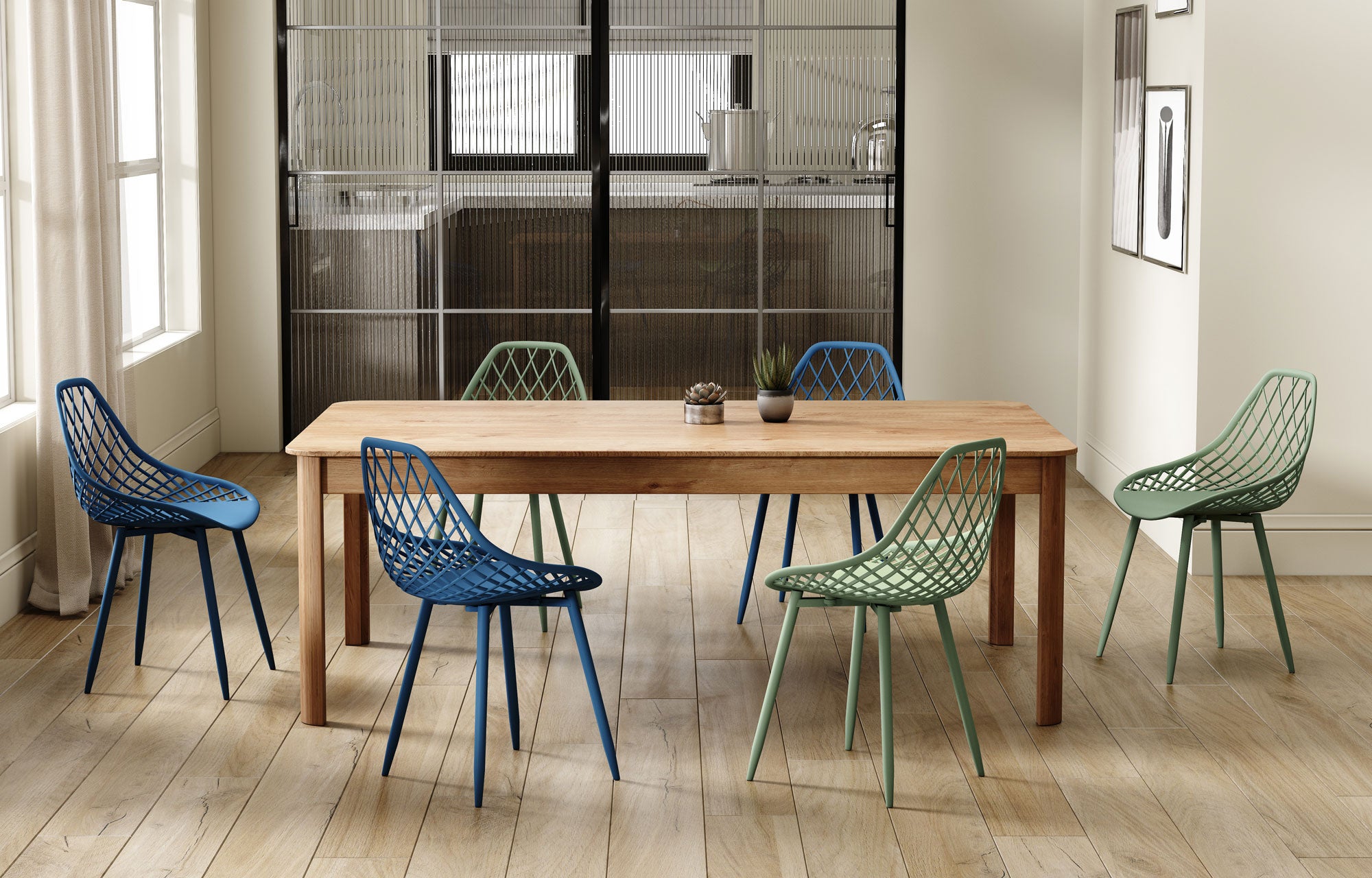 When the Kurv® Dining Chair gets put in a space, the fun begins. It doesn't matter whether it's indoors or outdoors, the Kurv® Dining Chair not only handles the weather, it wears well. Rain or shine, the chair is ideal for the outdoors with its ultra-durable and fade-resistant surfaces. Indoors, it elevates up the dining table but is also perfect as an entry chair or desk chair. It's as versatile as a chair can be. The combination of the airy design with faux wood durable steel legs complements just about any space. The variety of colors adds a touch of whimsy that you'll appreciate. The contoured shape is ergonomically designed for comfort. Smooth surfaces are weatherproof and easy to clean.