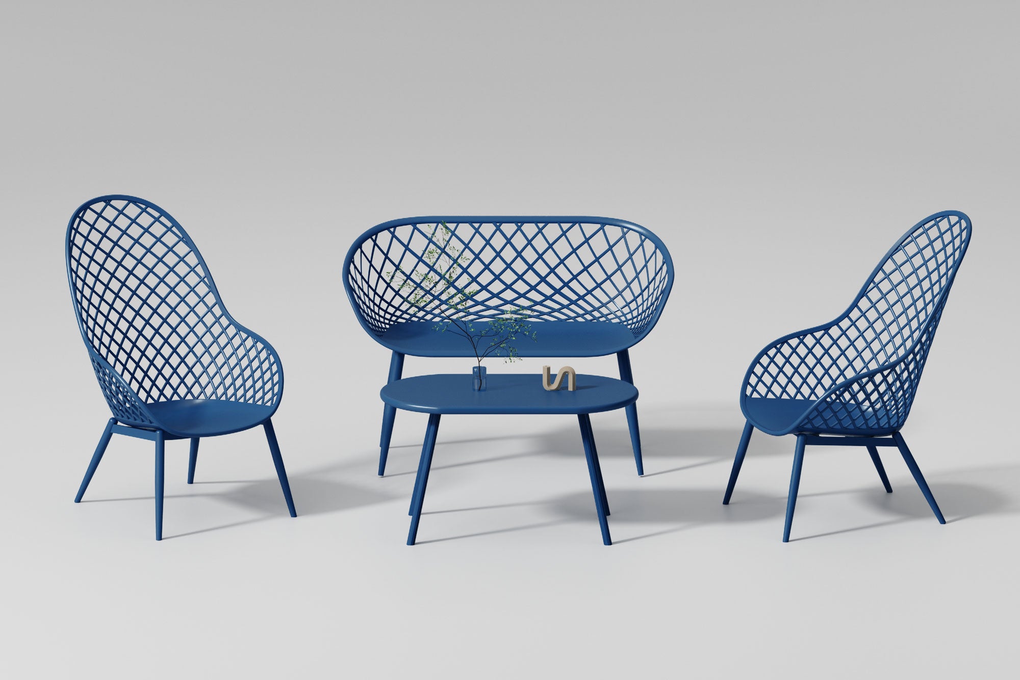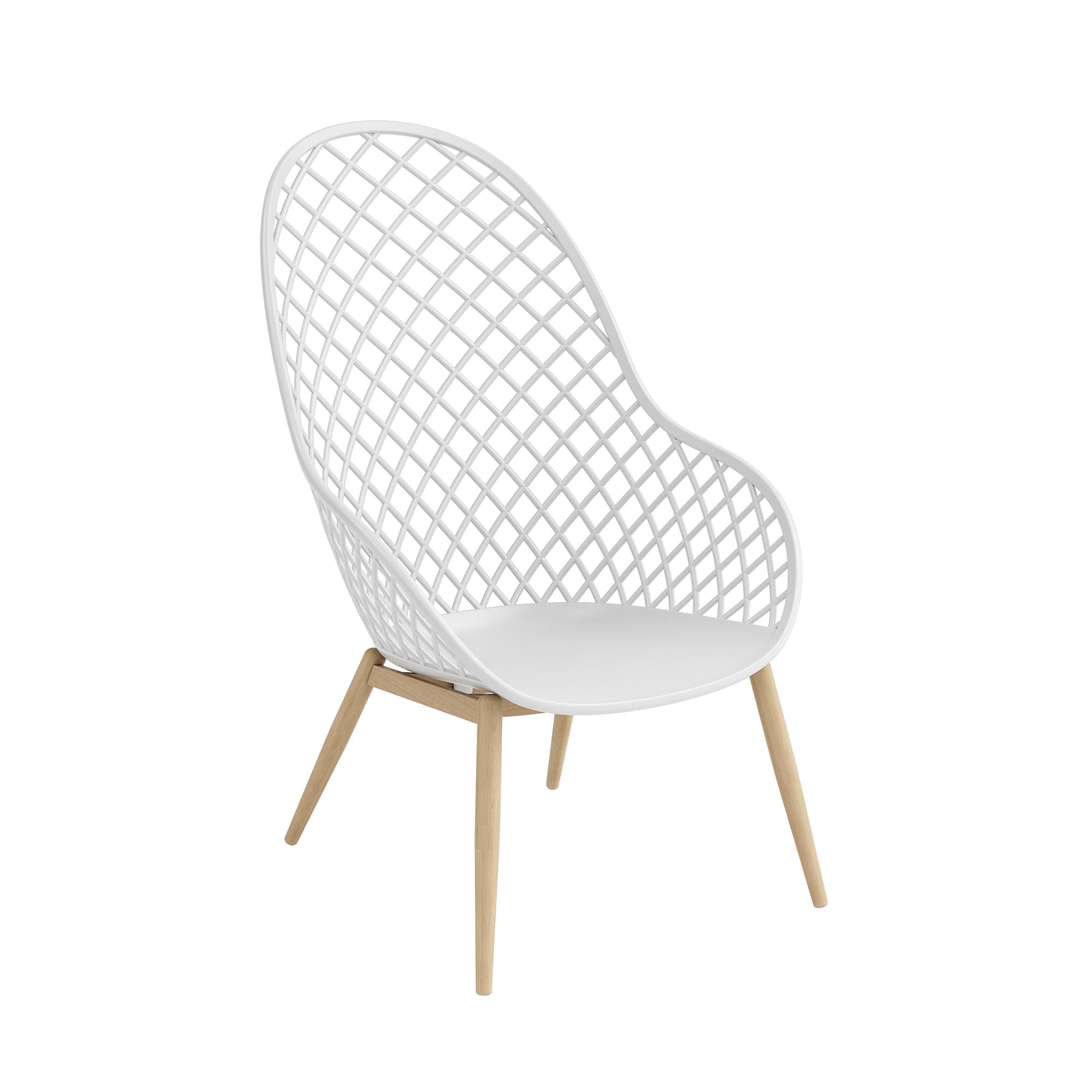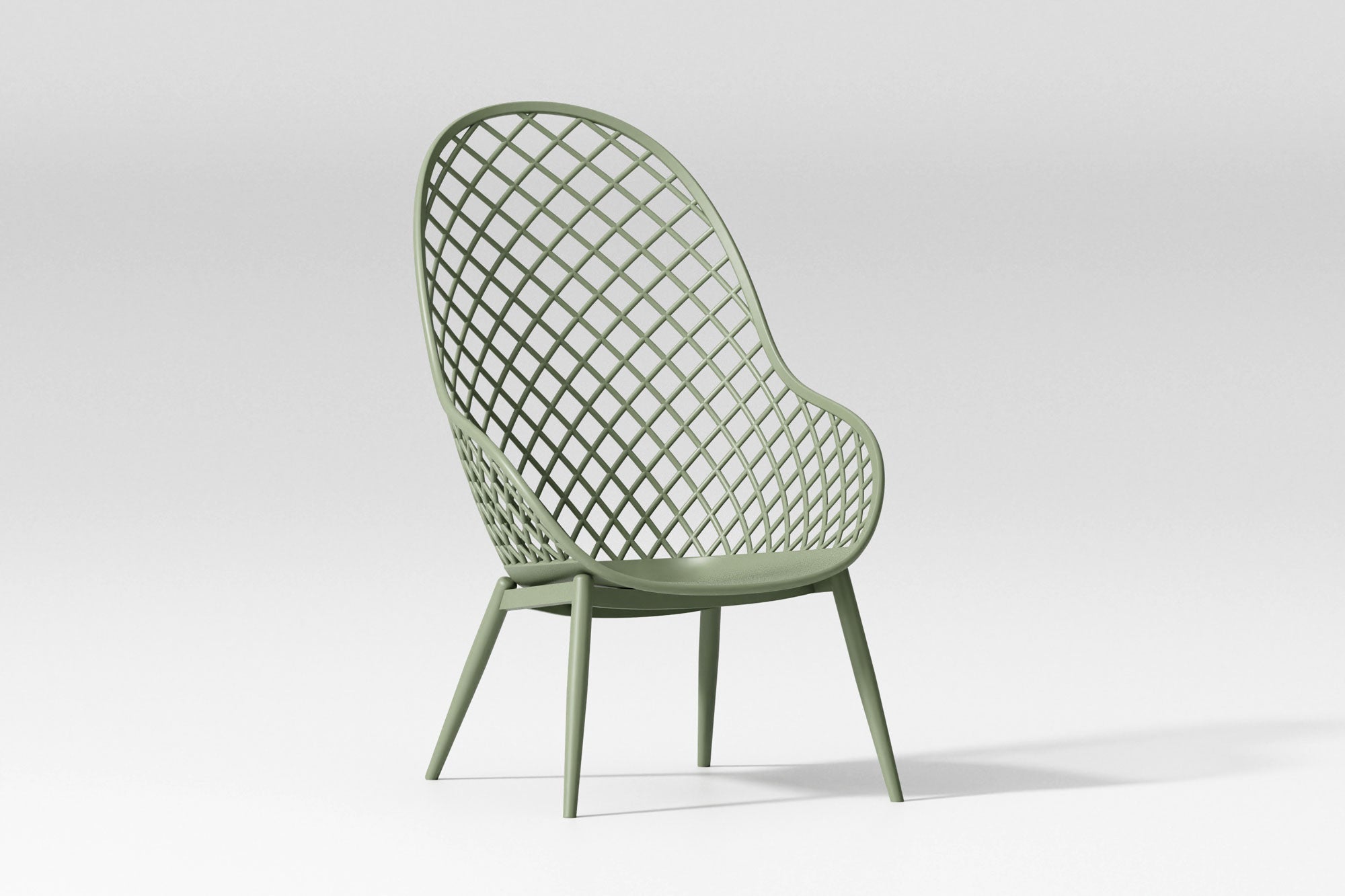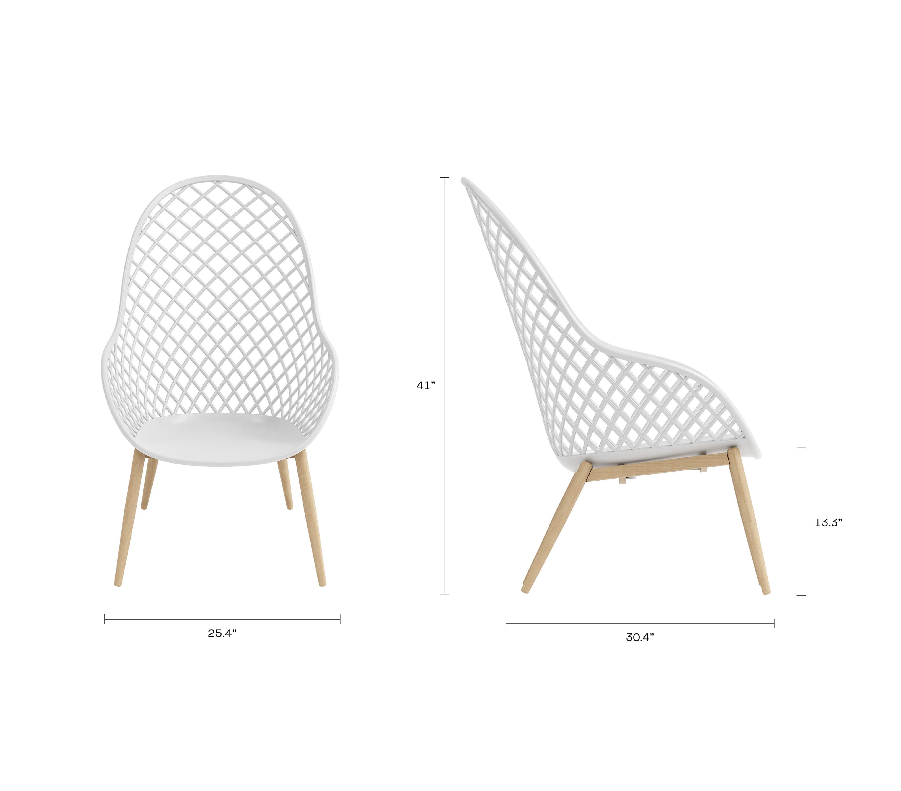 Get ready to relax and unwind with the Kurv® Lounge Chair. Designed to be the perfect spot for lounging, the taller back and wider sides let you sink in and focus on some quiet time. Whether indoors or outdoors, the chair works well in both settings with its ultra durable and fade resistant surfaces. Our signature cross-hatch pattern livens up the deck, balcony, terrace or even poolside. The combination of the airy design with faux wood durable steel legs complements just about any space with its touch of whimsy that anyone will appreciate. Add seat cushions and pillows into the mix--there's plenty of room. The contoured shape is ergonomically designed for excellent back support and overall comfort as well as style. Smooth surfaces and steel frame are hard wearing and easy to clean. Minor assembly required.