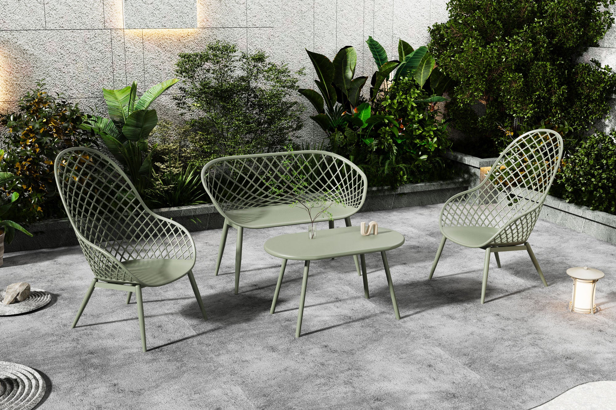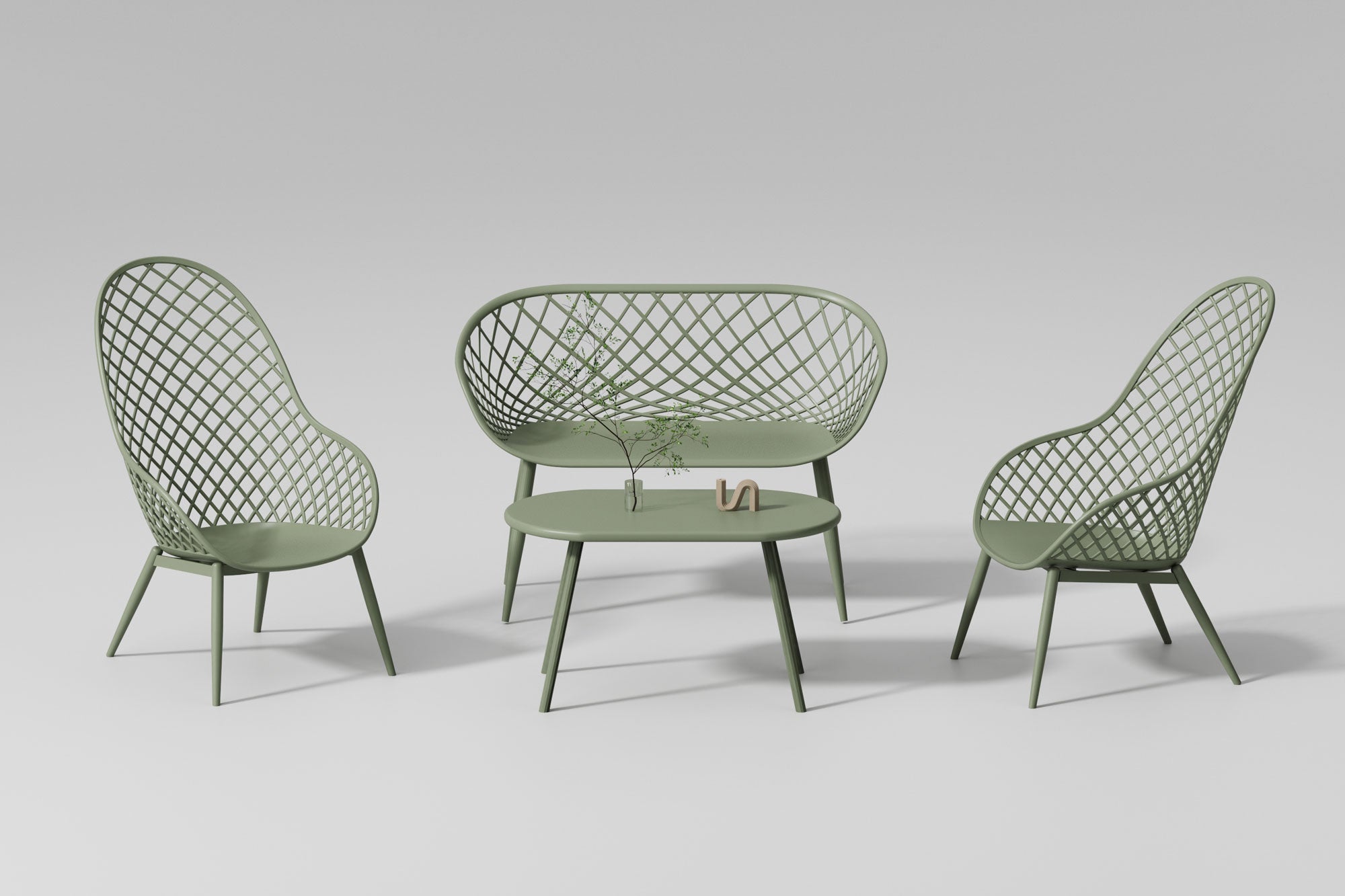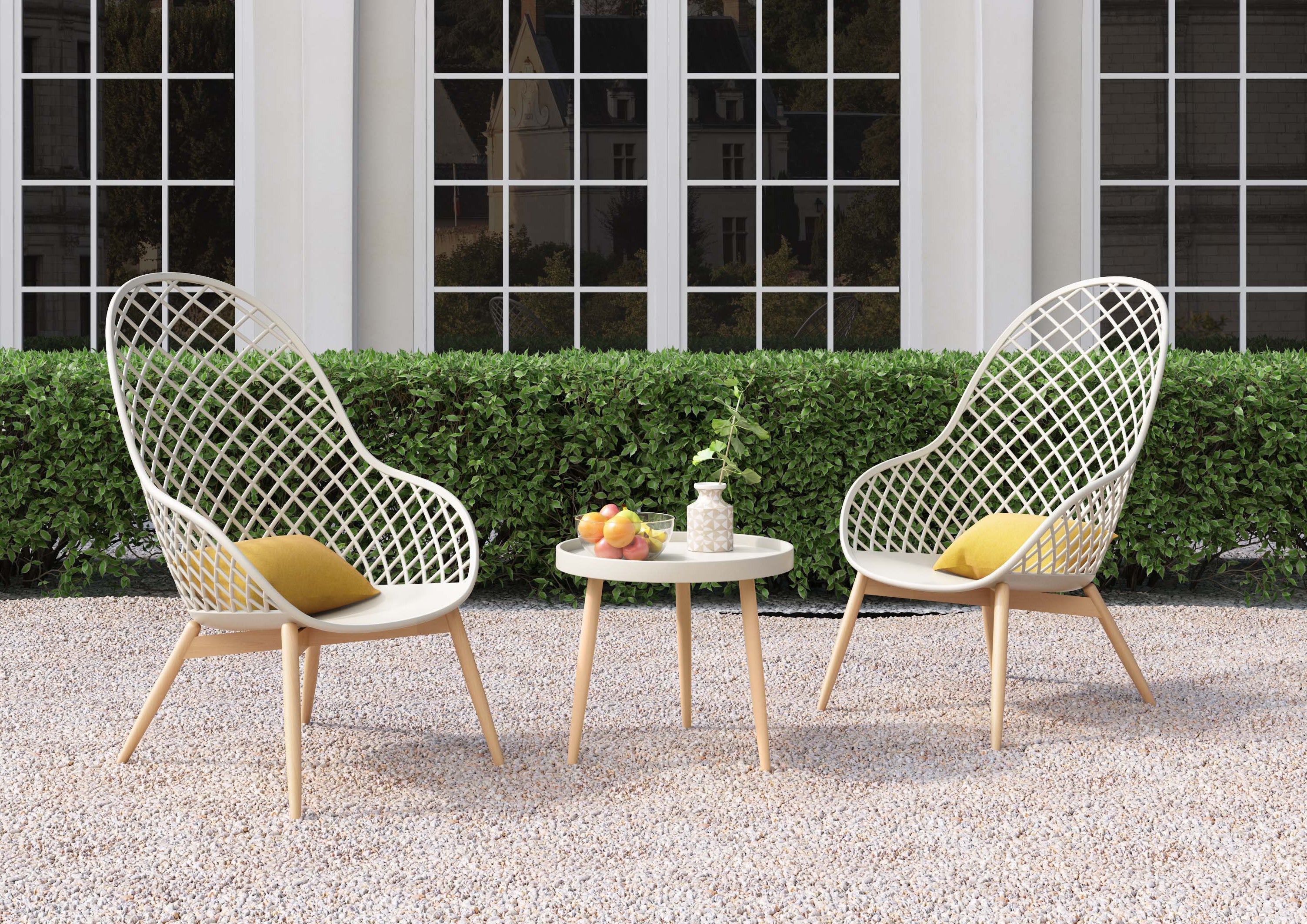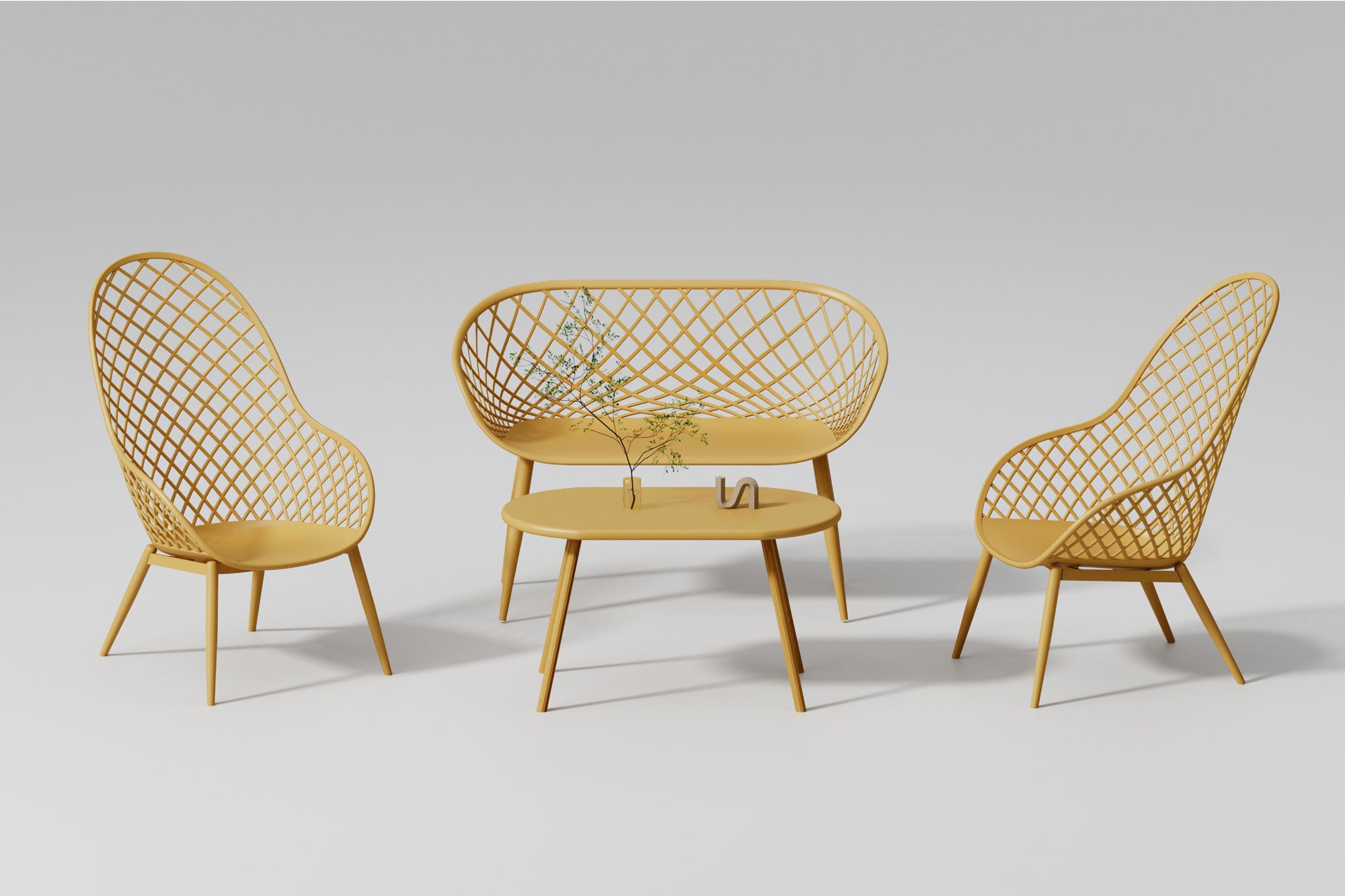 Get ready to relax and unwind with the Kurv® Lounge Chair. Designed to be the perfect spot for lounging, the taller back and wider sides let you sink in and focus on some quiet time. Whether indoors or outdoors, the chair works well in both settings with its ultra durable and fade resistant surfaces. Our signature cross-hatch pattern livens up the deck, balcony, terrace or even poolside. The combination of the airy design with faux wood durable steel legs complements just about any space with its touch of whimsy that anyone will appreciate. Add seat cushions and pillows into the mix--there's plenty of room. The contoured shape is ergonomically designed for excellent back support and overall comfort as well as style. Smooth surfaces and steel frame are hard wearing and easy to clean. Minor assembly required.