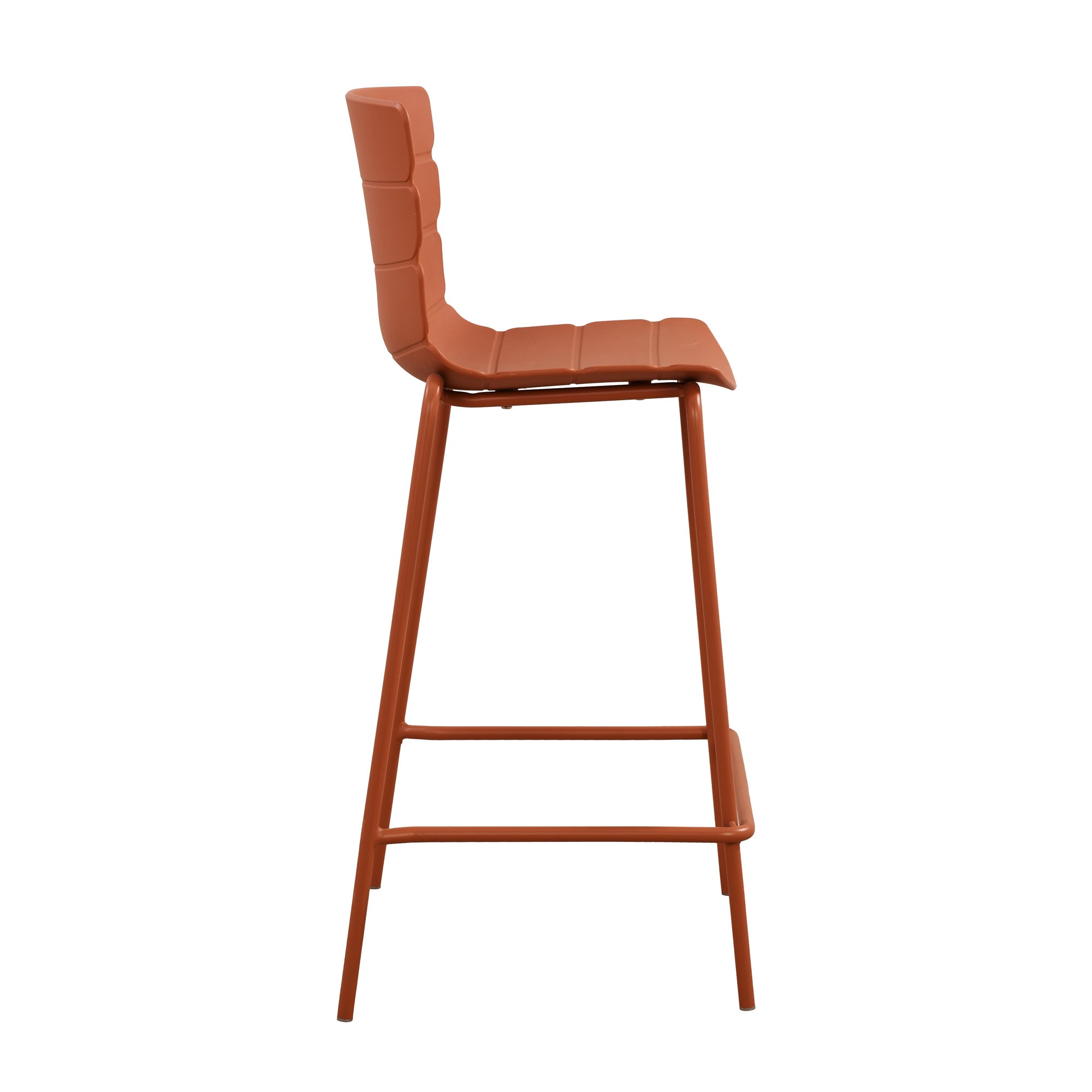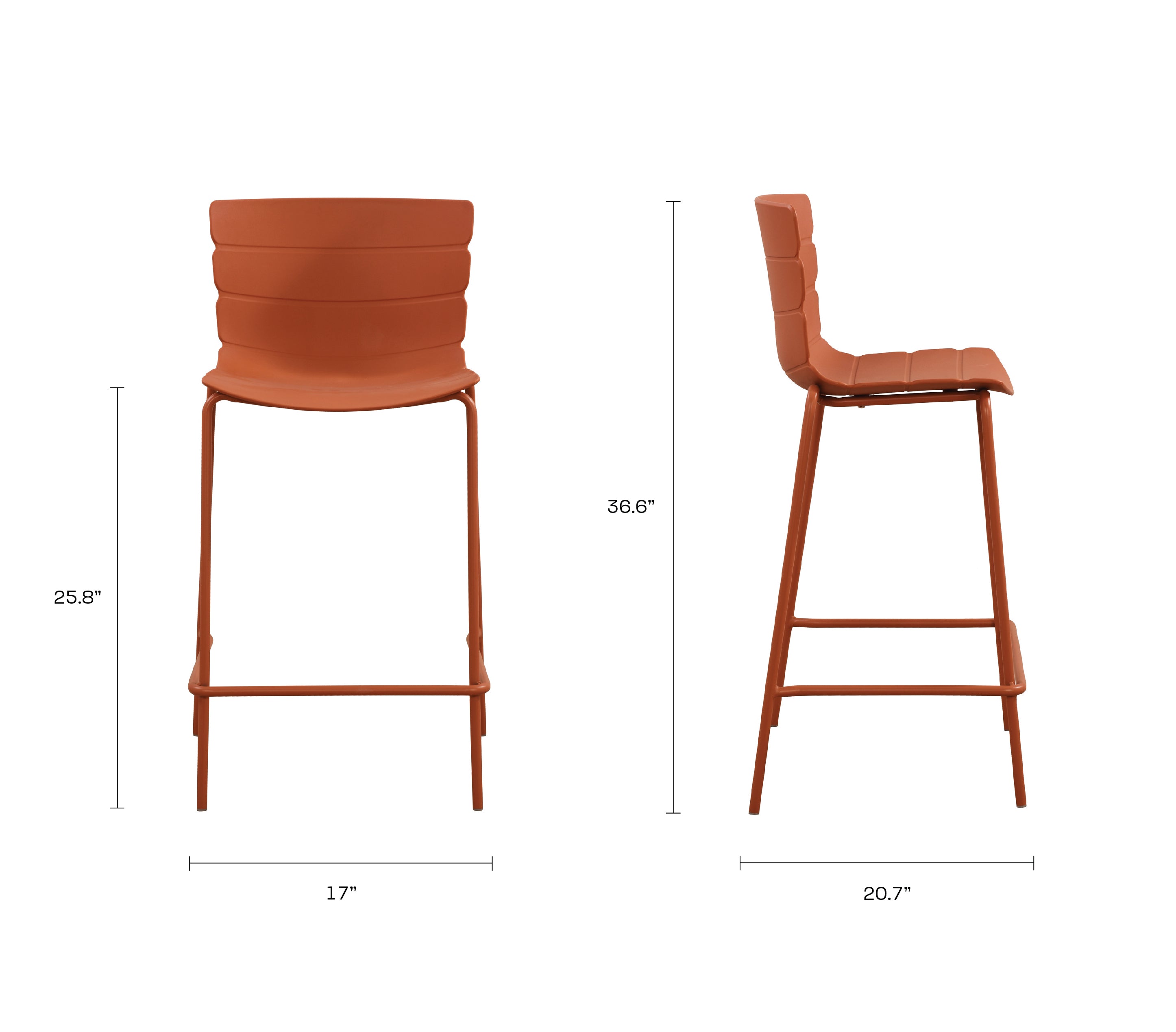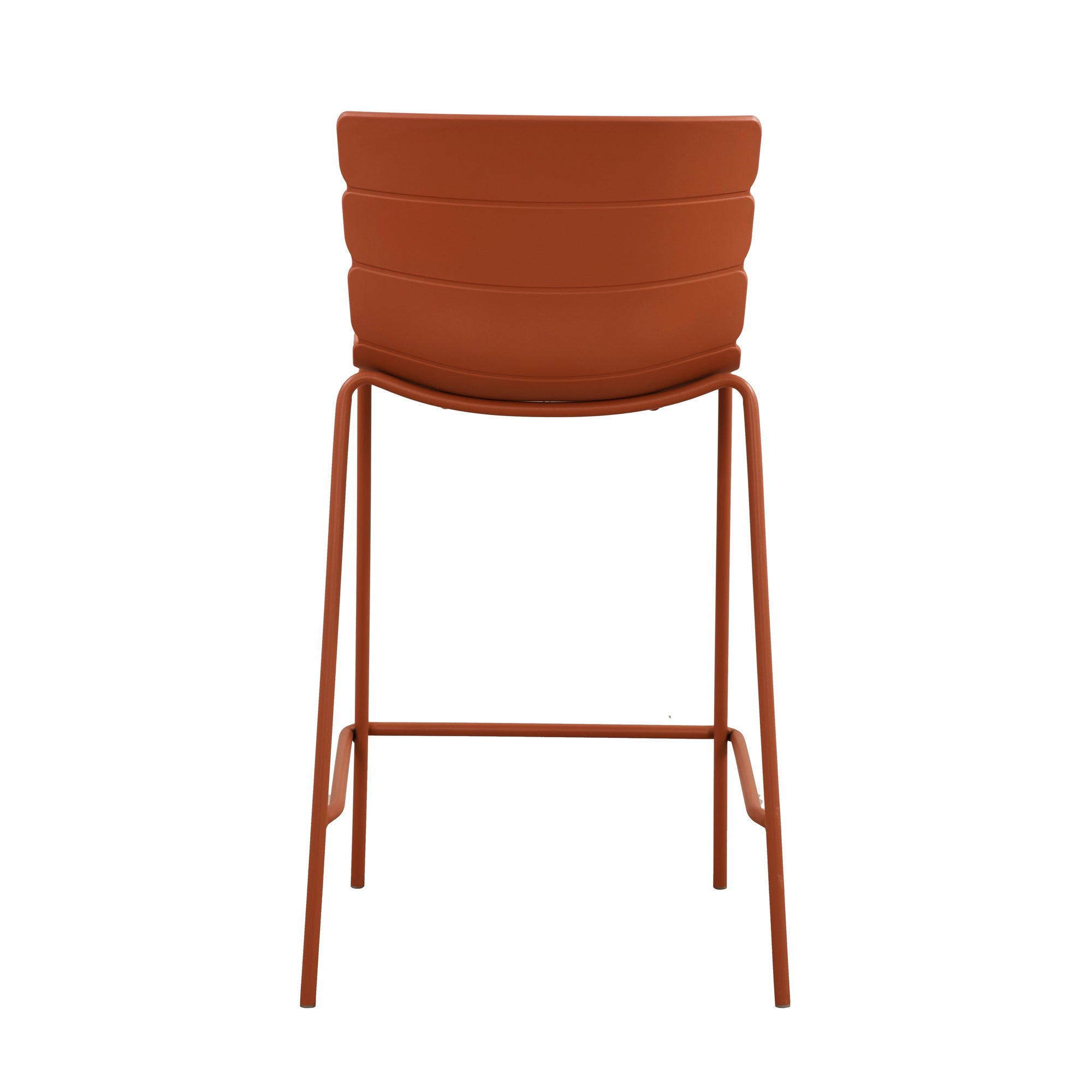 Crafted from durable polypropylene with metal legs, the chair is suited for both indoor and outdoor environments. Whether styled at a kitchen island, high-top table, or patio bar, it adds a bold, modern presence to any setting.