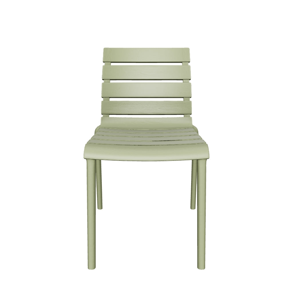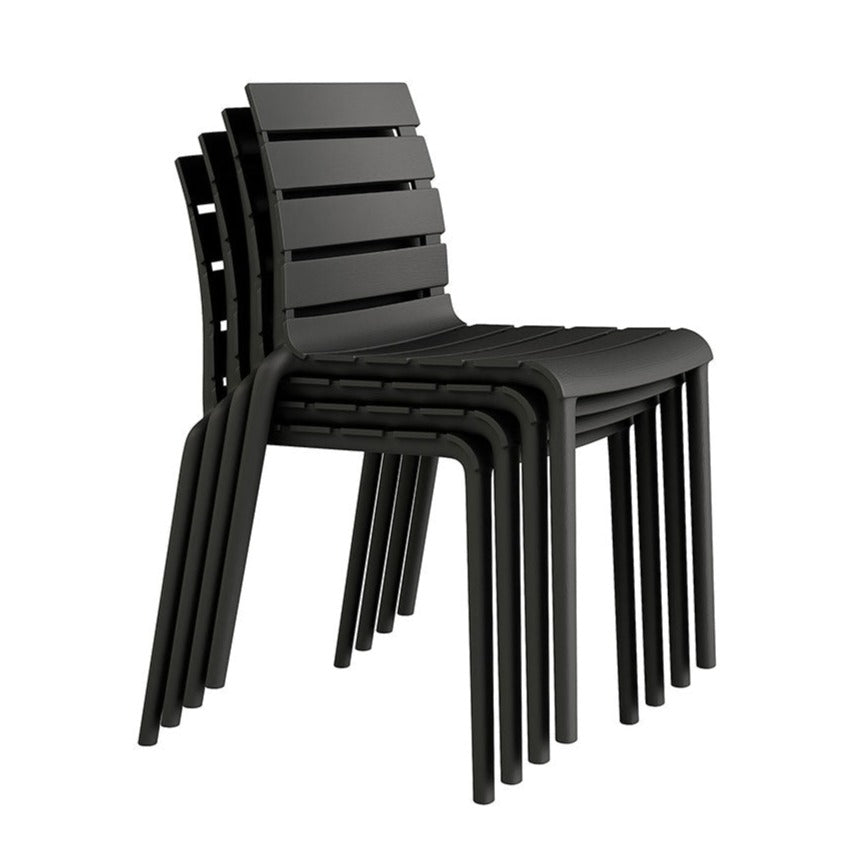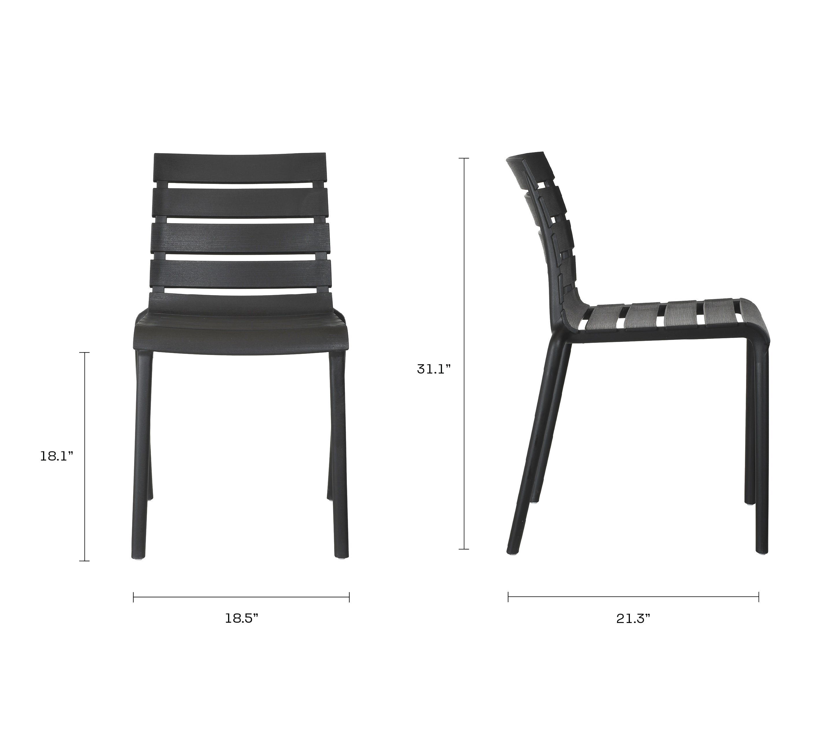 Designed for today’s modern lifestyle, the Rylan chair effortlessly combines practicality and style to suit every taste. Made for enjoying outdoors but just as ideal for indoors, the well-crafted chair features a slim contoured molded seat for seamless comfort and an airy slatted back. The small footprint is the perfect chair for around-the-dining-table. Lightweight and made of a durable molded polypropylene, it’s easy to stack multiple chairs for space-saving storage. The simplicity of the design makes it a timeless piece that goes well in any setting and suits whatever your needs are. While perfect as a dining chair, it’s also just the right size for a desk, entryway chair, or pair it with a bistro table on the patio. Weatherproof and no assembly required. Measures 17.3”W x 21.3”D x 30.7”H. Seat height 17.8”.
