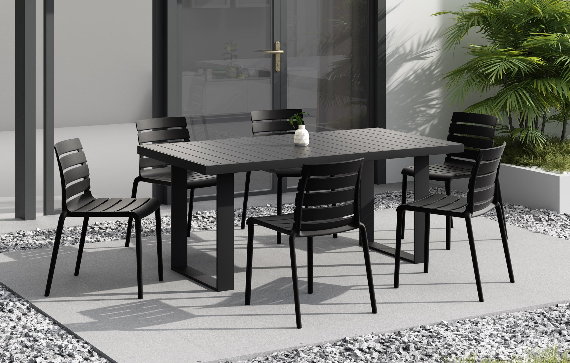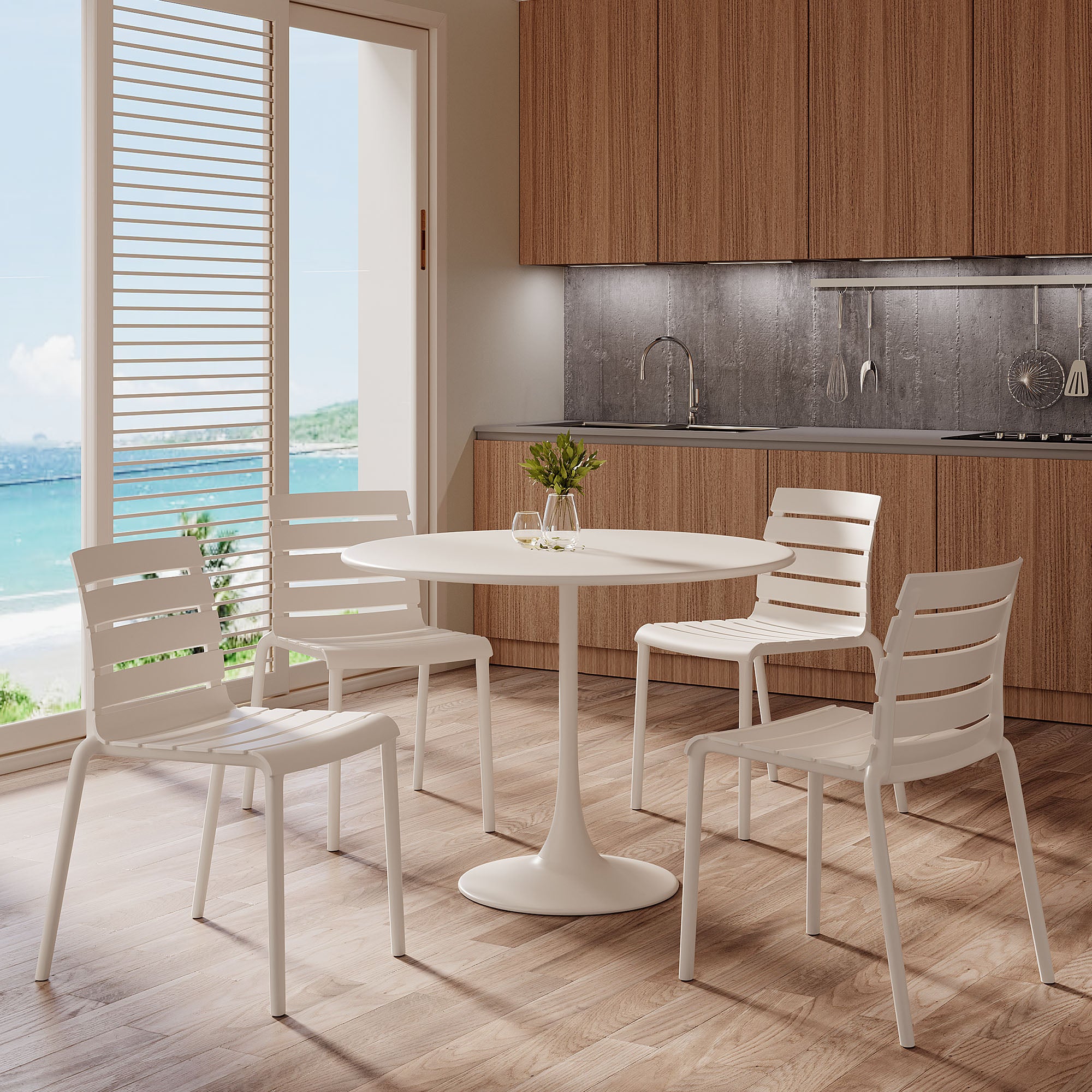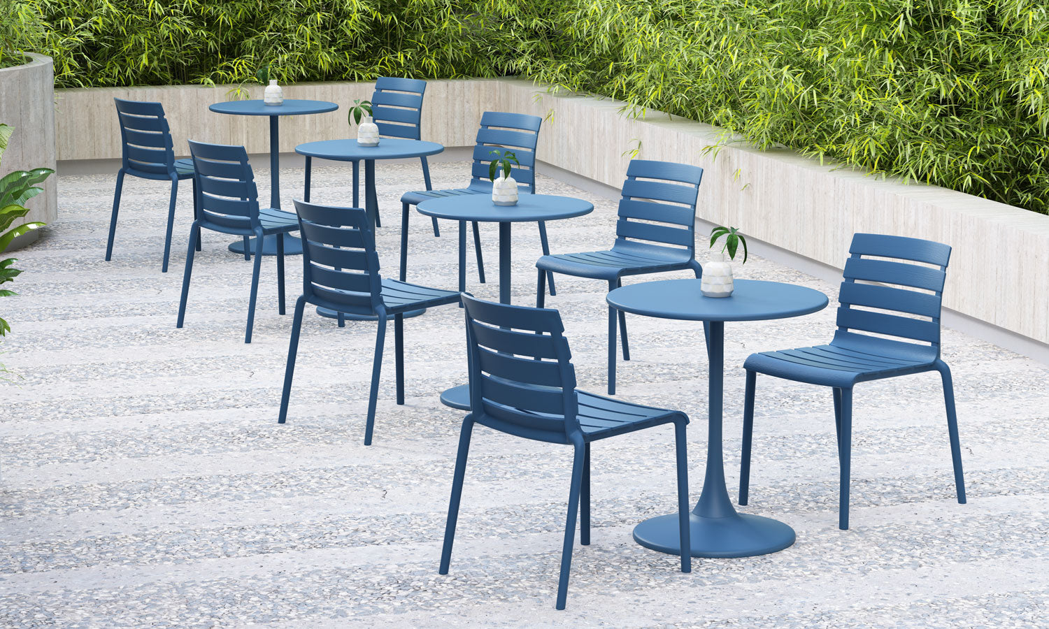 Designed for today’s modern lifestyle, the Rylan chair effortlessly combines practicality and style to suit every taste. Made for enjoying outdoors but just as ideal for indoors, the well-crafted chair features a slim contoured molded seat for seamless comfort and an airy slatted back. The small footprint is the perfect chair for around-the-dining-table. Lightweight and made of a durable molded polypropylene, it’s easy to stack multiple chairs for space-saving storage. The simplicity of the design makes it a timeless piece that goes well in any setting and suits whatever your needs are. While perfect as a dining chair, it’s also just the right size for a desk, entryway chair, or pair it with a bistro table on the patio. Weatherproof and no assembly required. Measures 17.3”W x 21.3”D x 30.7”H. Seat height 17.8”.