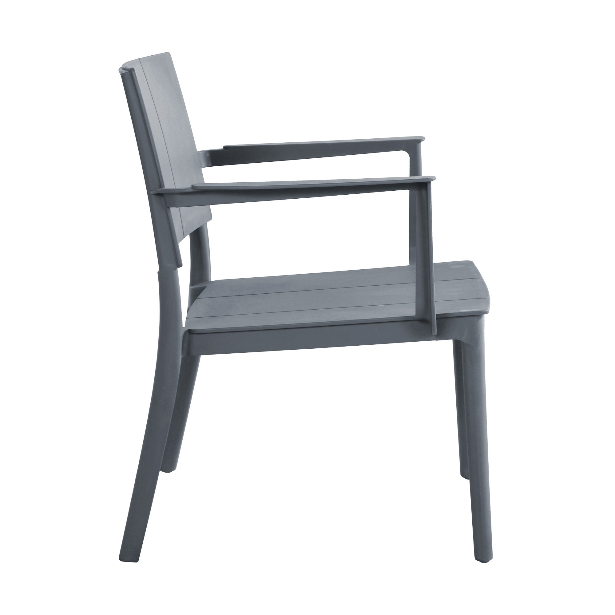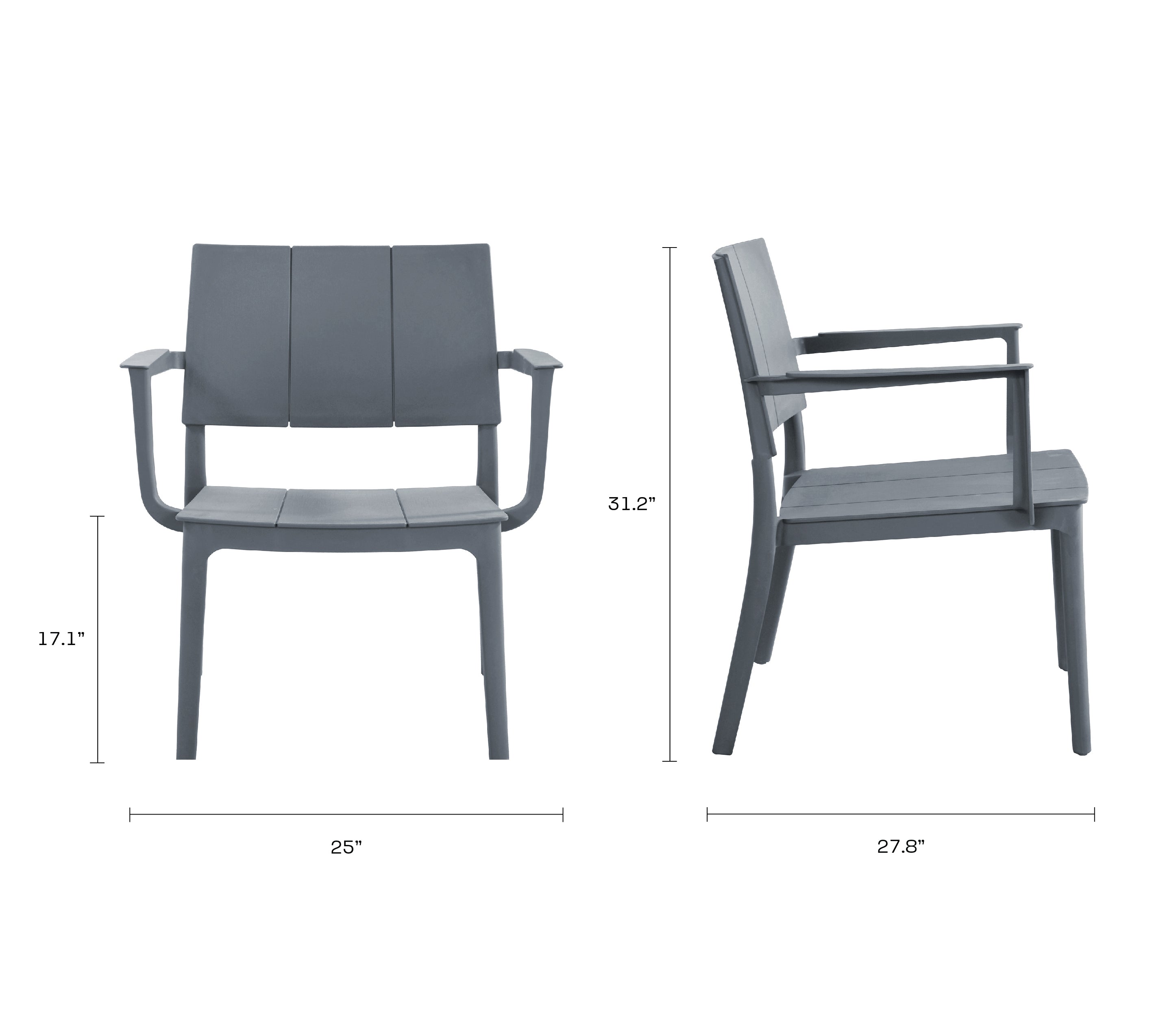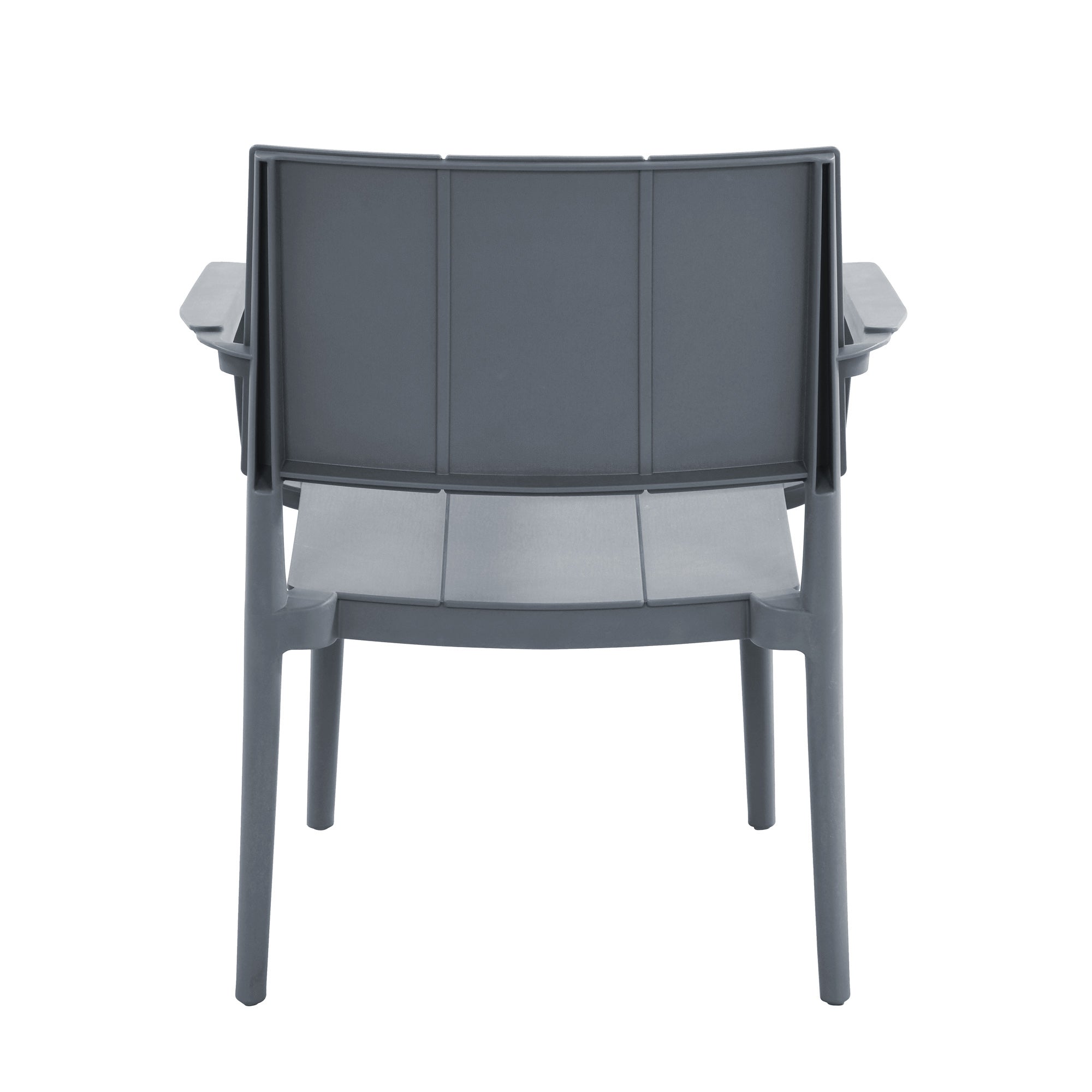 The Trenton Lounge Chair is a stylish and durable seating option designed for comfort and relaxation in both indoor and outdoor spaces. Featuring a slatted wood-look backrest and seat, this chair combines a contemporary aesthetic with a sturdy and weather-resistant construction, making it ideal for patios, lounges, and garden spaces.