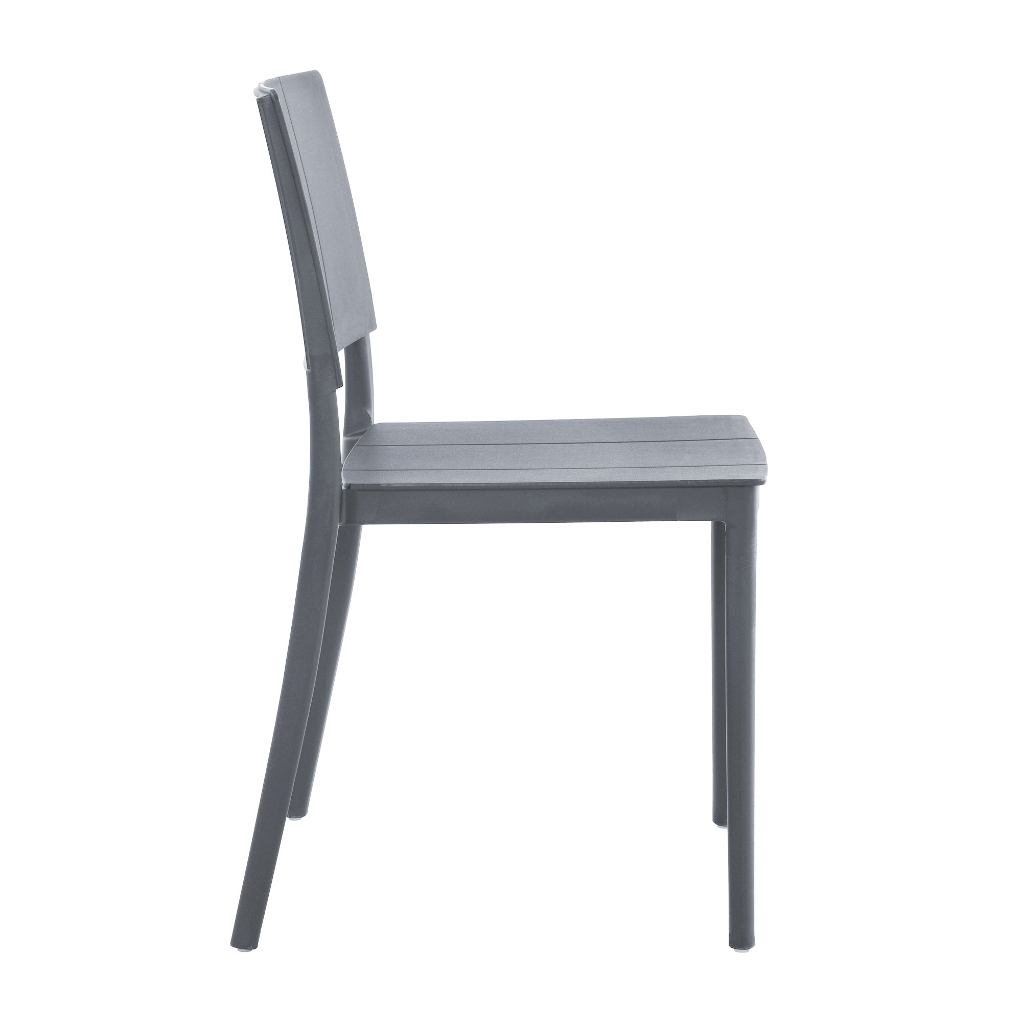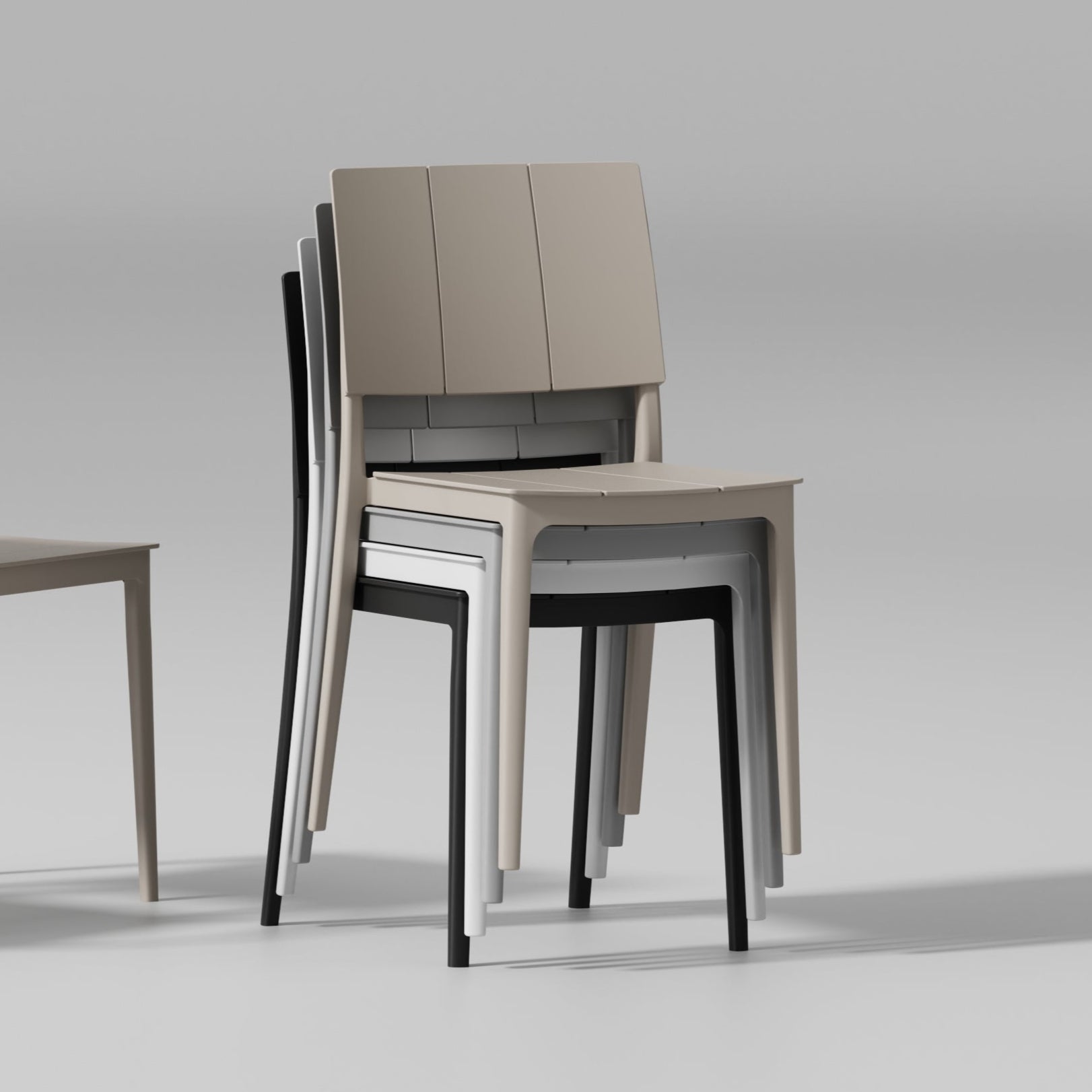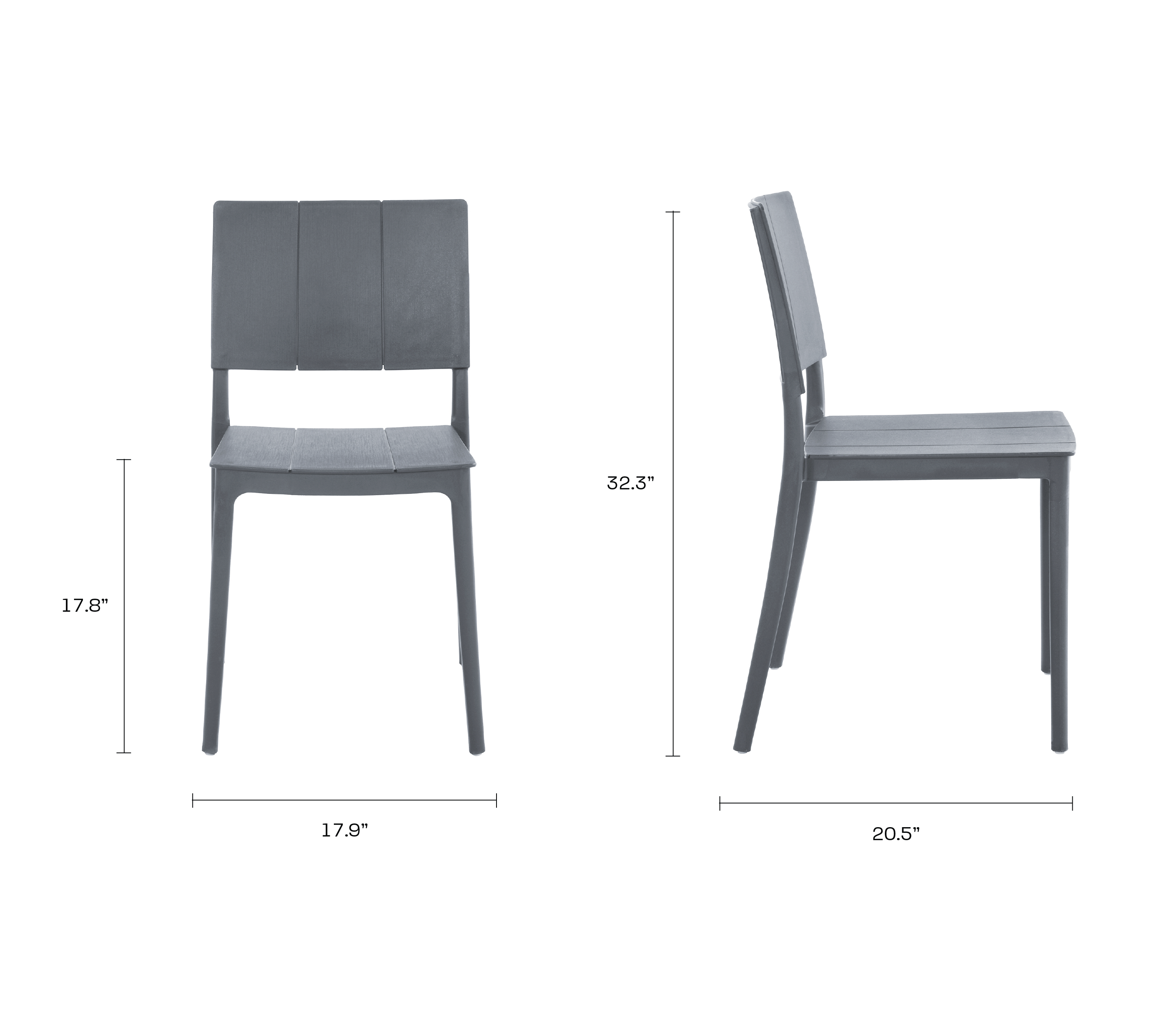 The Trenton Side Chair is a sleek and modern seating option, designed for both indoor and outdoor use. Featuring a slatted backrest and seat, this chair combines a contemporary aesthetic with exceptional durability. Crafted from weather-resistant materials, it is lightweight, easy to clean, and built to withstand the elements.
